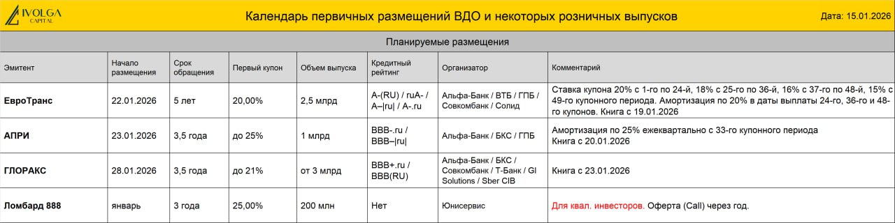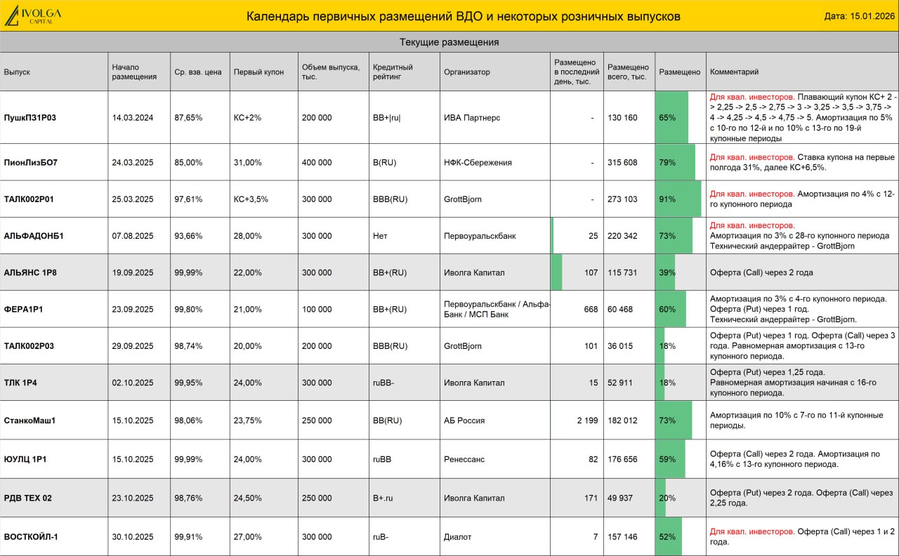 🔸ООО Л-Старт БО-02 (B.ru, 500 млн руб., ставка купона 32%, YTM 32,59%, дюрация 2,4 года) размещен на 61%. Интервью с эмитентом YOUTUBE | ВК | RUTUBE. ❗️Сегодня, 16 января, завершается размещение выпуска. Заявки будут приниматься до 16-00.❗️