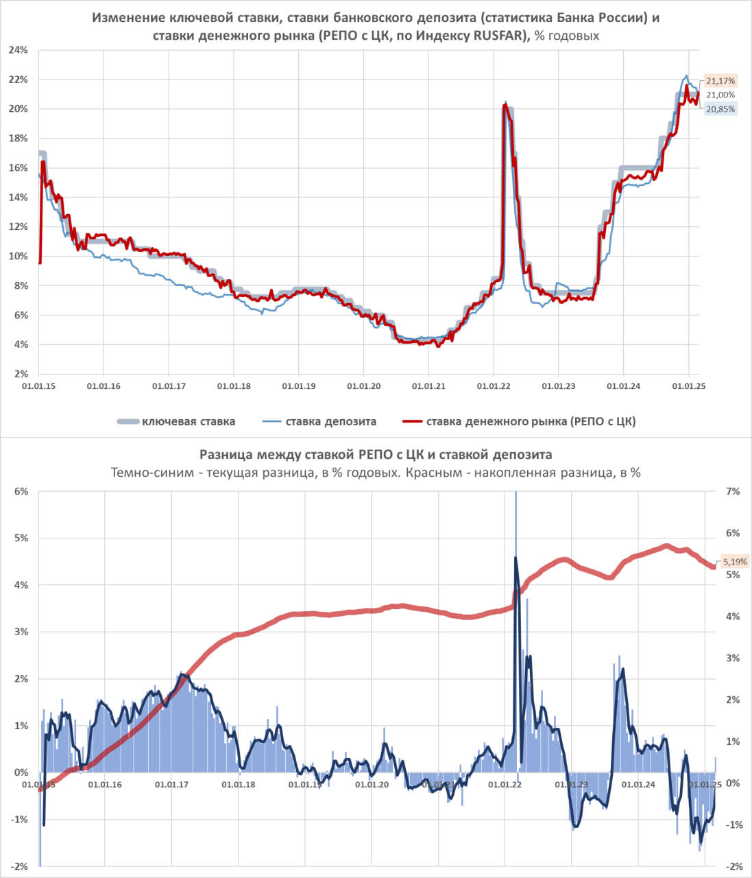 Первое. Последние отчетные 20,85% — всё равно много. При КС = 21% мы должны видеть что-то около 19% на депозитах.