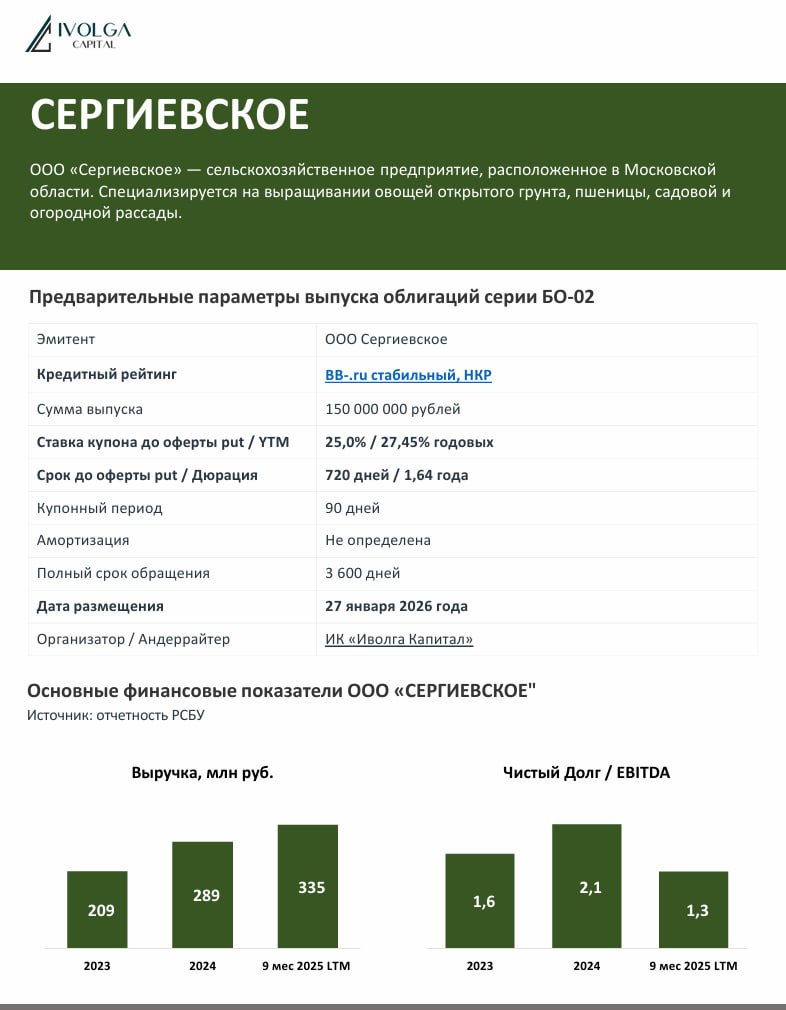 🌾 Растениеводческая компания ООО Сергиевское возвращается на рынок облигаций!